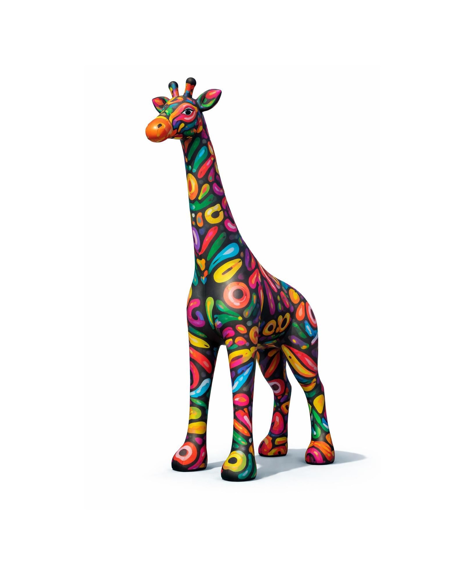 מייצג מתנפח בדמות ג’ירפה גבוהה, צבעונית ומרשימה, היוצר נוכחות בולטת וייחודית בכל מתחם.